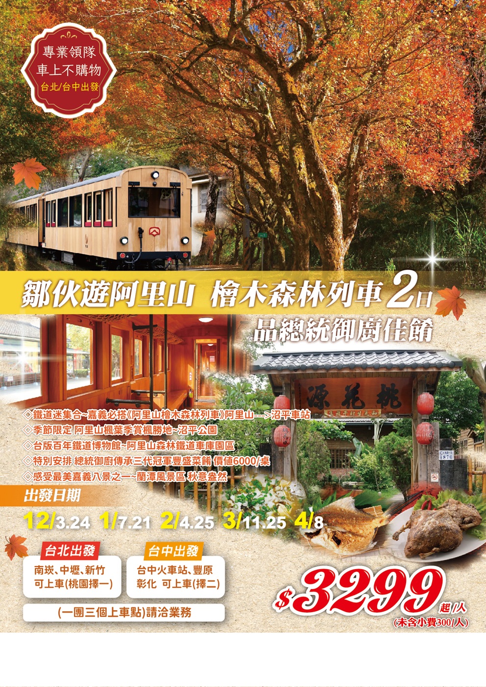鄒伙遊阿里山 檜木森林列車 品總統御廚佳餚 二日