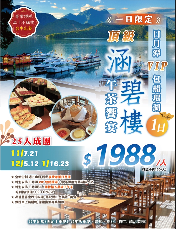 【日月潭 VIP 包船環湖+導覽~三大碼頭(水社+玄光寺+伊達邵)停靠觀光】